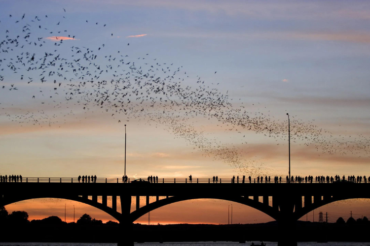 Witness one of Austin’s most unique displays by heading to the Congress Avenue Bridge at dusk. Thousands of bats emerge, creating a breathtaking display as they fill the evening sky. It’s a natural phenomenon that captures the essence of Austin’s wide-ranging charm.
