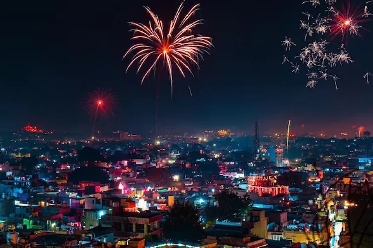 - Lighting of diyas and fireworks