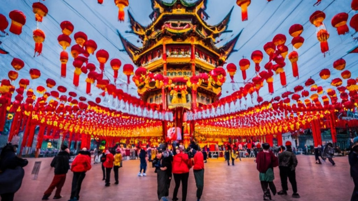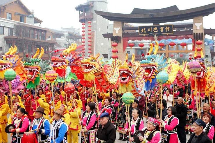Chinese New Year, also known as the Spring Festival, is the most significant traditional celebration in China. Celebrations last for 15 days, starting with the new moon and ending with the Lantern Festival. Festivities include dragon and lion dances, elaborate feasts, family reunions, and fireworks. The streets are decorated with red lanterns and banners, symbolizing good luck and prosperity.