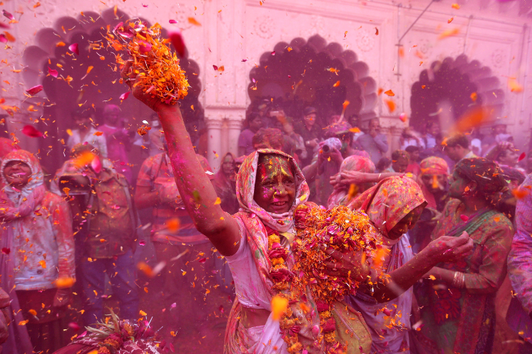 Vrindavan, the birthplace of Lord Krishna, is synonymous with Holi celebrations. Festivities begin days in advance with Lathmar Holi in Barsana, where women playfully hit men with sticks. On the day of Holi, Vrindavan’s streets burst into color as revelers drench each other with water and smear gulal (colored powder) on each other’s faces. The Banke Bihari Temple becomes the epicenter of the celebrations, with devotees gathering to sing and dance in ecstasy.