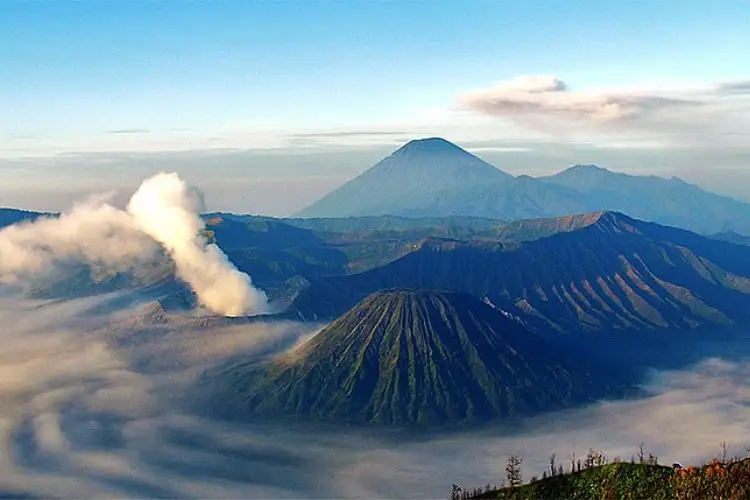 Witness the awe-inspiring beauty of Mount Bromo, an active volcano located in East Java. Trek to the volcano’s crater rim to marvel at the panoramic views of the surrounding landscape, which includes vast expanses of volcanic sand and the dramatic Tengger Caldera. Also, if you desire a truly unforgettable experience, visit Mount Bromo at sunrise and watch as the first light of day illuminates the mist-covered valleys below.