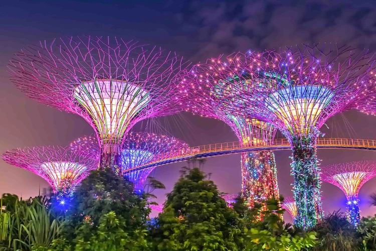 Adjacent to Marina Bay, Gardens by the Bay is a futuristic oasis featuring the iconic Supertree Grove and expansive conservatories like the Flower Dome and Cloud Forest. The Supertrees come alive in the evening during the Garden Rhapsody light show, creating a magical atmosphere. For a unique perspective, stroll along the OCBC Skyway, which offers stunning aerial views of the gardens.