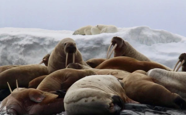 In Europe’s Arctic, walruses can often be seen resting together on ice floes or rocky beaches. Their presence highlights the productivity of cold seas, where nutrient-rich waters support abundant marine life despite harsh conditions.